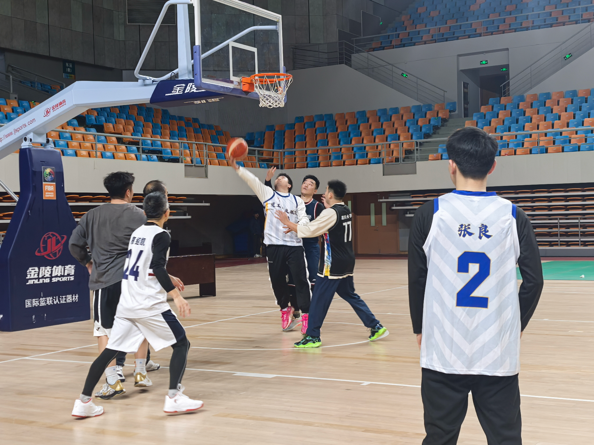 场上攻势如潮,场下呐喊激昂。校友联队中锋屡次篮下强打得分,展现扎实功底;教工队则凭借精准三分与灵活传切不断得分。双方你追我赶,比分交替上升,每一次防守、每一次快攻都凝聚着团队的力量,也将现场气氛不断推向高潮。
