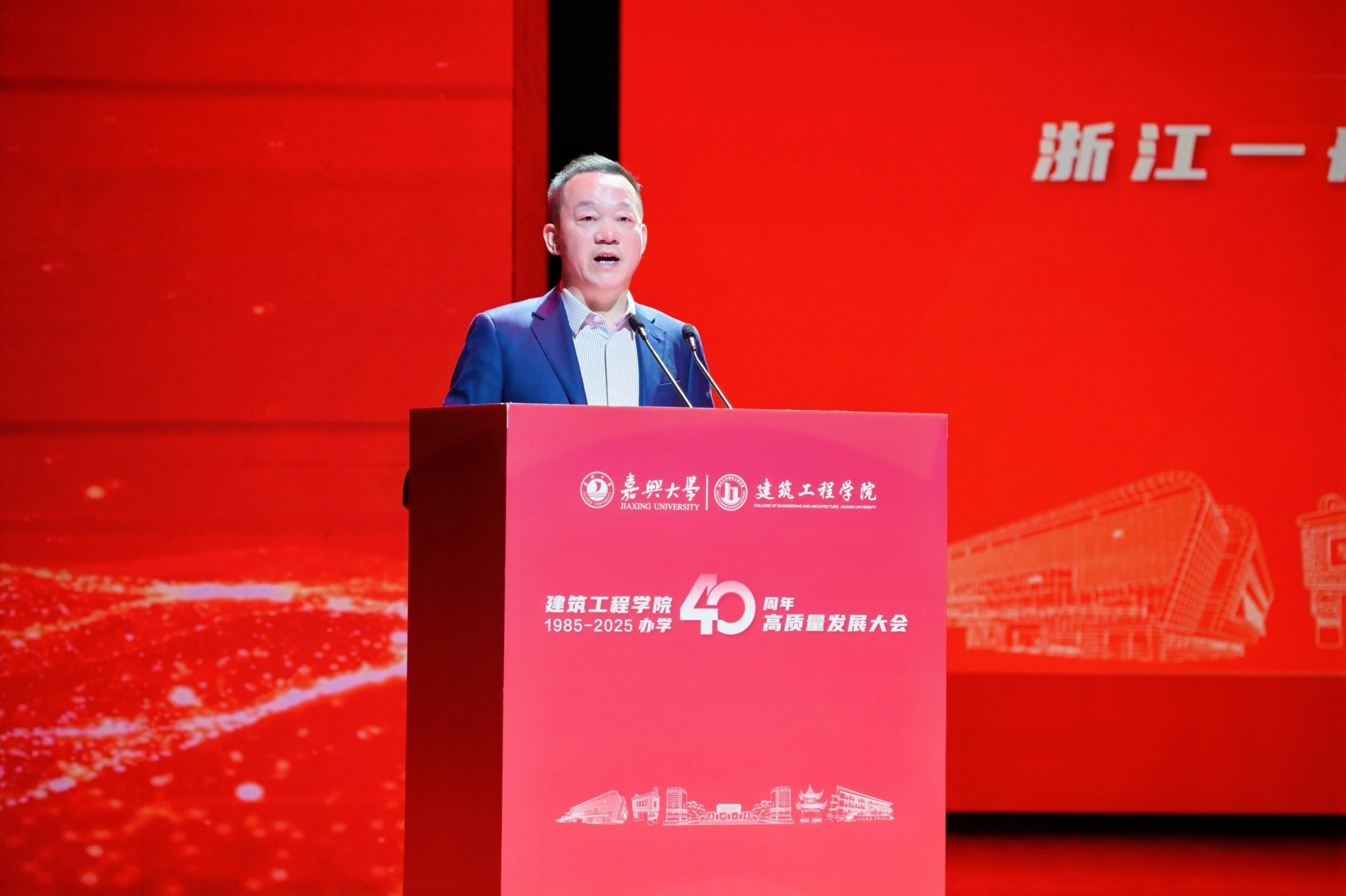 四十年栉风沐雨,四十载春华秋实。11月8日上午,嘉兴大学建筑工程学院办学40周年高质量发展大会在庄重而热烈的氛围中启幕。学院党委书记童勇军主持大会。