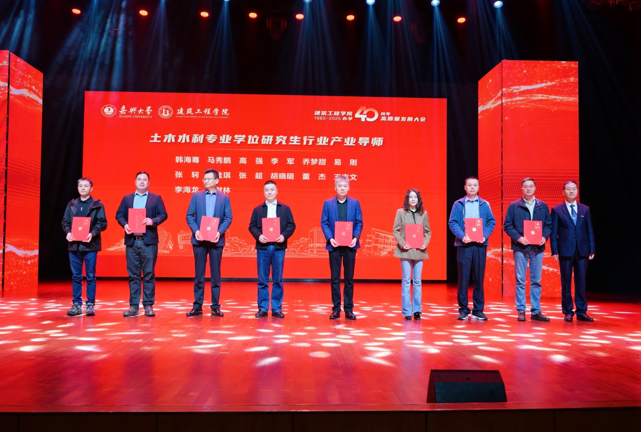 学院党建共同体单位代表、校企合作企业代表,嘉兴市建筑业协会、勘察设计协会、监理协会、造价协会、消防协会、装饰协会、绿建协会、土木建筑学会代表,学院老领导、老同志,社会各界朋友,学校职能部门负责人代表,曾在学院工作的同事和校友代表,以及师生代表等800余人齐聚一堂,共襄盛会,共同见证这一重要时刻。