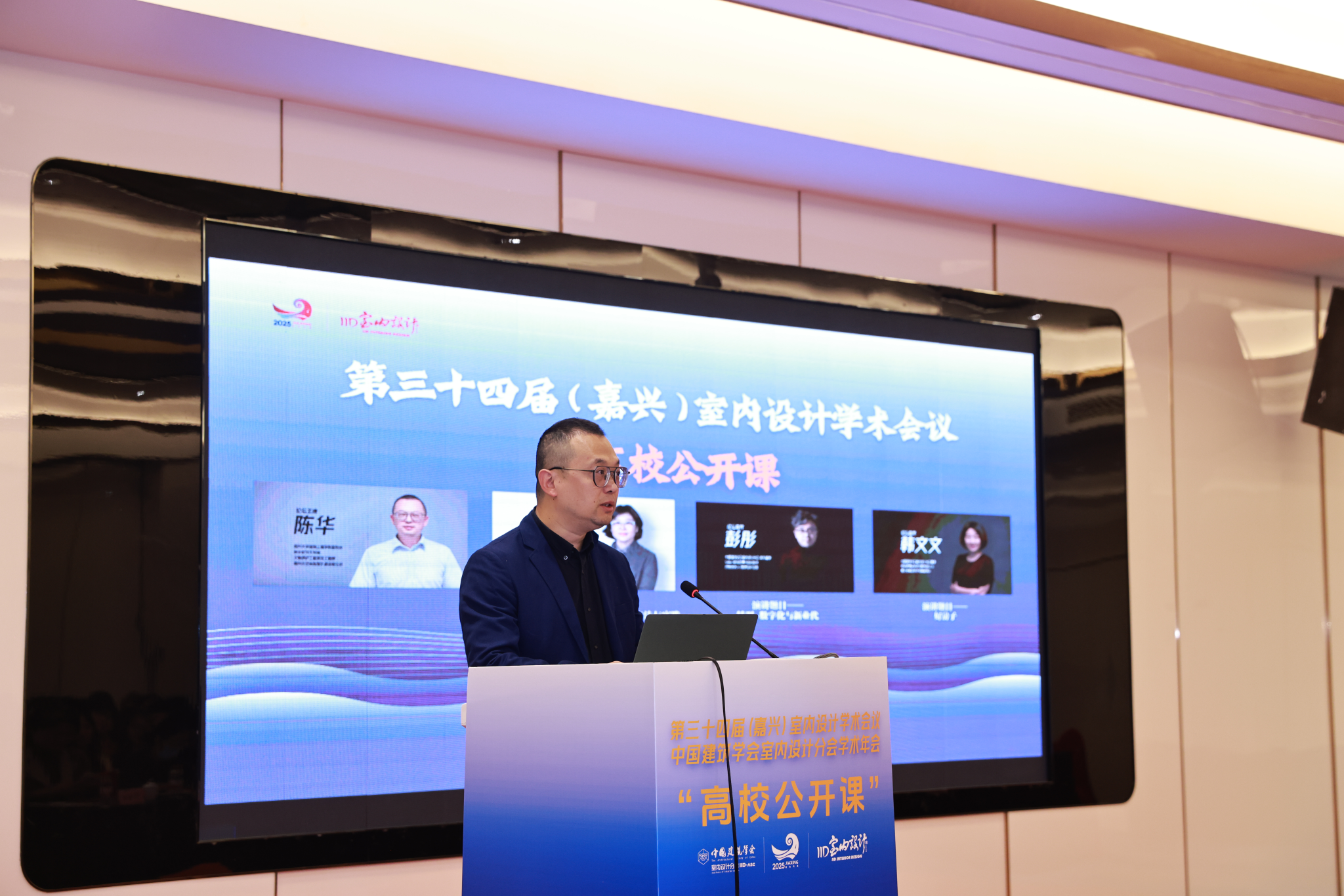 2025年11月13日下午,中国建筑学会室内设计分会第34届(嘉兴)年会高校公开课隆重举行。本次高校公开课由嘉兴大学建筑工程学院主办。此次活动的分享内容兼具理论深度与实践价值,既能促进优质设计理念与实践经验的结合,也为行业创新发展与人才培养提供新思路,对推动行业高质量发展具有重要意义。公开课由学院副院长陈华主持。