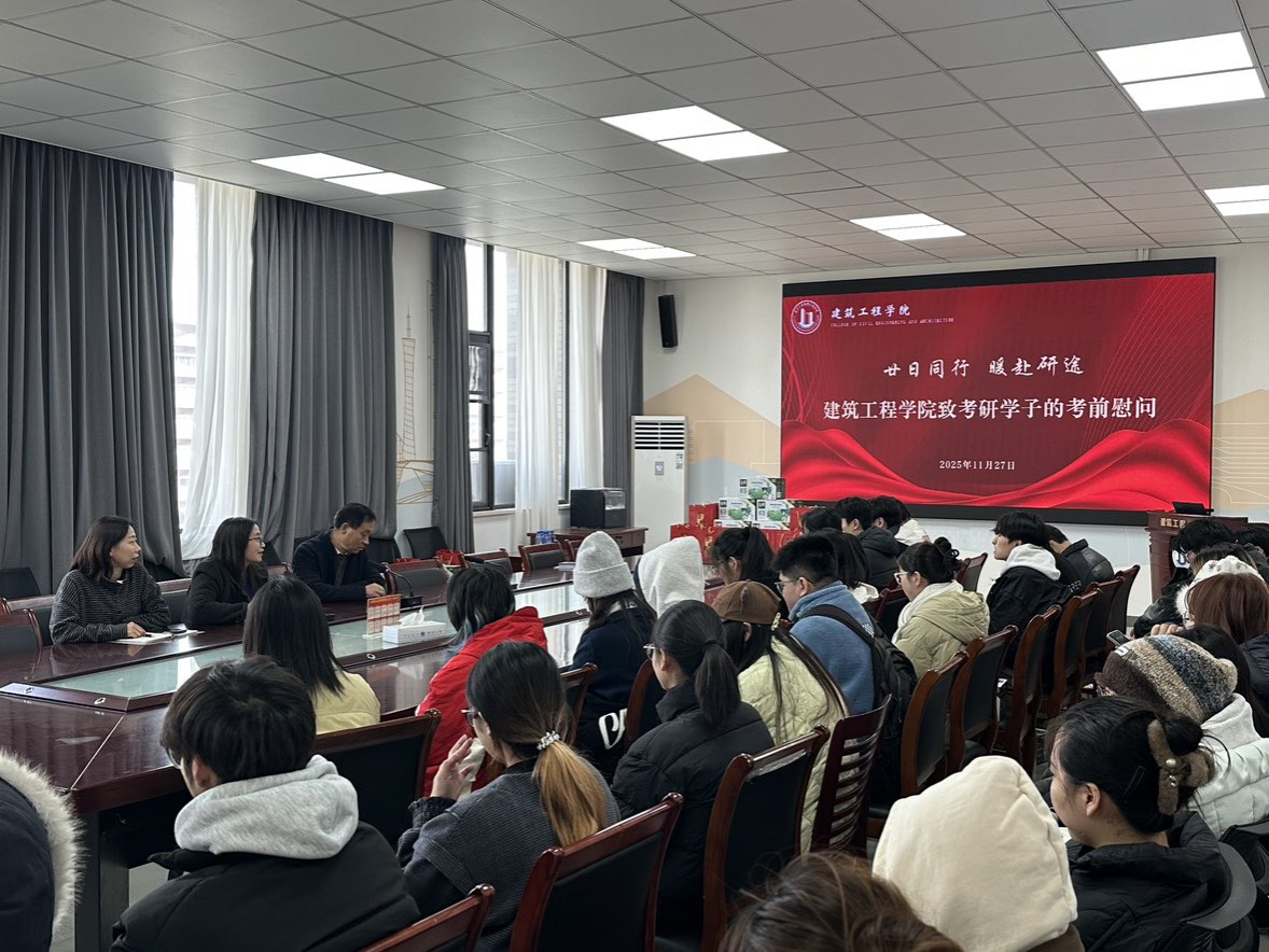 为切实提振2026届考研学子信心,缓解备考压力,传递学院关怀,11月27日,建筑工程学院精心举办“廿日同行 暖赴研途”为主题的考研慰问活动。学院院长王恩茂、党委副书记杨智慧、学工办主任徐静、辅导员黄明叶以及2026年考研学子参加了活动。活动由学院党委副书记杨智慧主持。