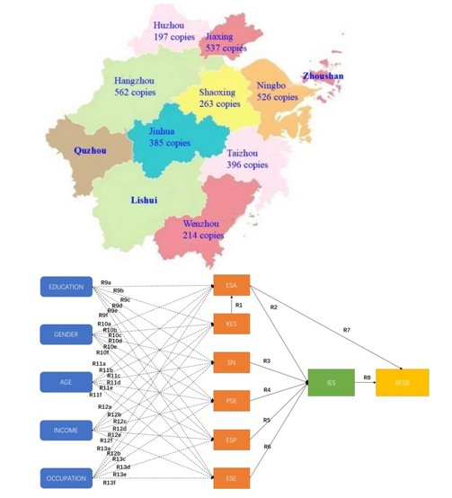 图2 居民能耗的TPB-KAP模型 图3调研地点及TPB—KAP初始模型