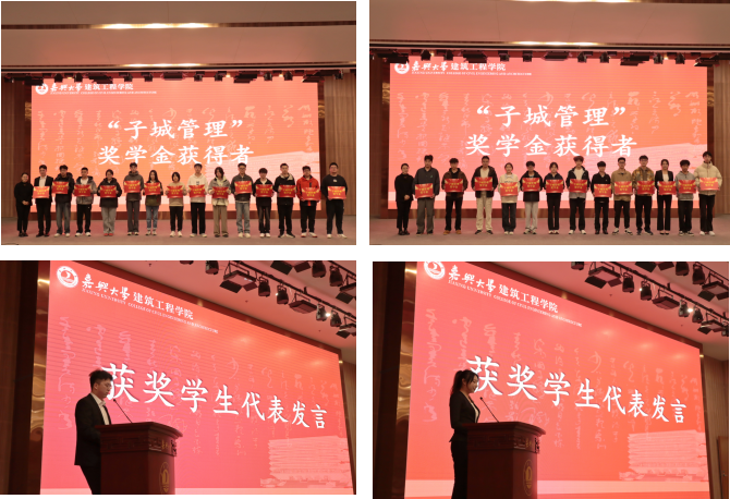 仪式在热烈庄重的氛围中拉开帷幕。杨智慧首先宣读“子城管理”“子城联合”奖助学金获奖名单。随后,企业嘉宾为获奖学生颁奖。两位获奖学生代表分别上台,分享了他们在专业学习、实践探索中的成长故事与心得体会。
