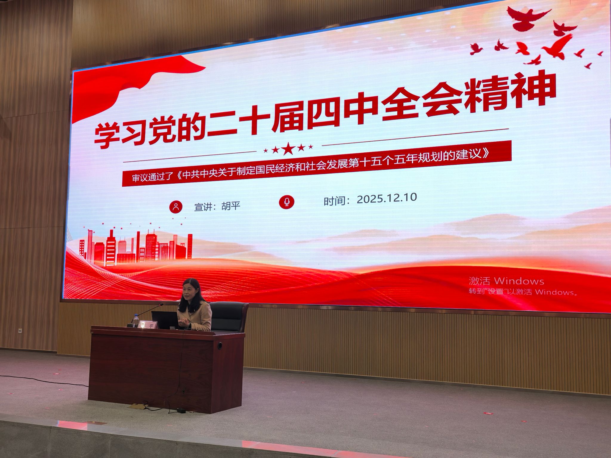 胡平副教授以清晰的脉络和深入浅出的语言,对党的二十届四中全会召开的背景、重大意义和核心要旨进行了系统阐述。她重点围绕全会审议通过的“十五五”规划建议报告,结合当前国内外形势与国家中长期发展战略,进行了全面深入的解读和辅导。胡教授的讲解内容丰富、重点突出、分析透彻,既有理论高度,又紧密联系实际,对于帮助与会人员深刻理解全会精神实质、准确把握国家未来五年发展规划的战略意图、目标任务和具体路径,具有重要的指导作用。