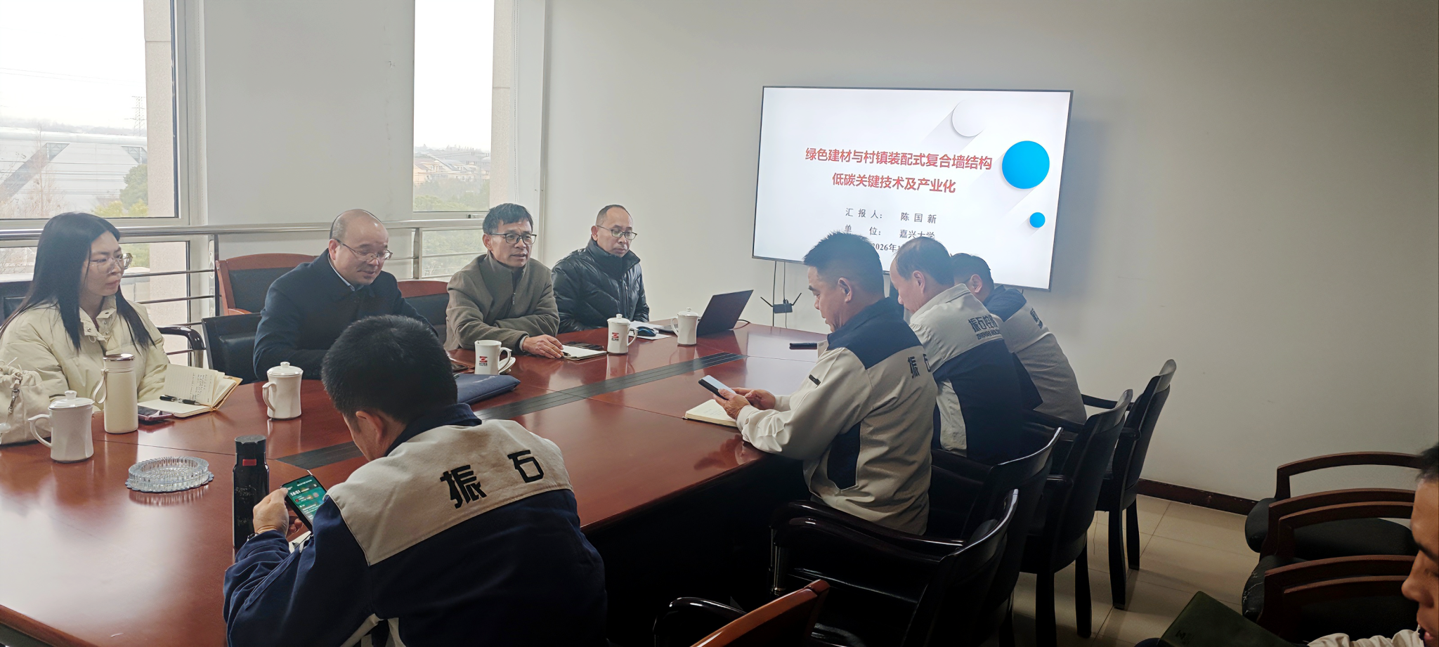 2026年1月20日,嘉兴大学建筑工程学院副院长熊厚仁率领土木工程材料与结构团队蒋元海教授、陈国新教授、薛力梨主任等一行赴振石集团东方特钢有限公司开展调研交流。振石集团东方特钢副总邱春鸣、能源环保部经理杨萌等领导热情接待并参与座谈。