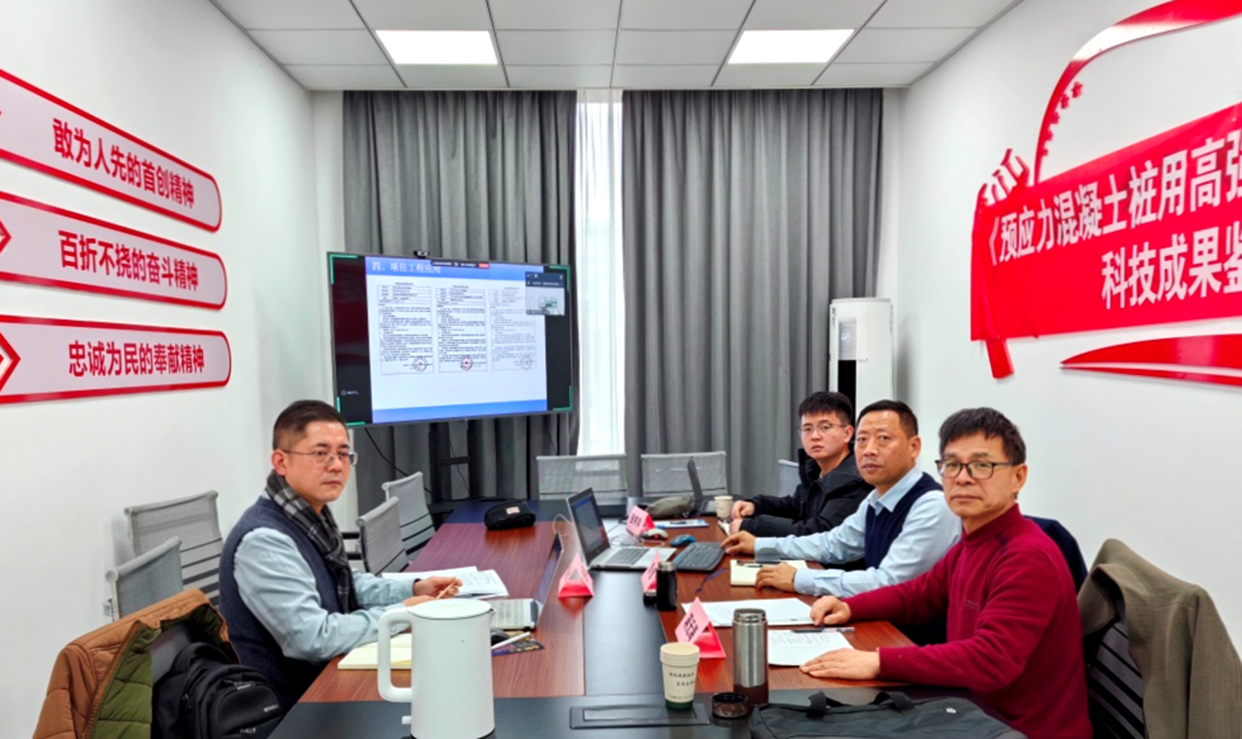 鉴定会由协会副秘书长陈玉博士主持,张日红、杨学林等业内资深专家组成鉴定委员会。中桩材料科技总经理陈奎致辞,指出项目响应建材行业绿色低碳发展号召,旨在破解预应力混凝土桩产业链关键技术瓶颈。项目完成单位汇报了成果内容,介绍项目针对传统端板材料等级低、工艺繁琐等痛点,通过端板参数化设计优化、冲压成型核心工艺研发及专用装备创新、样件与整桩接头系统性试验验证三大核心环节,实现端板轻量化、高强化与低成本化。